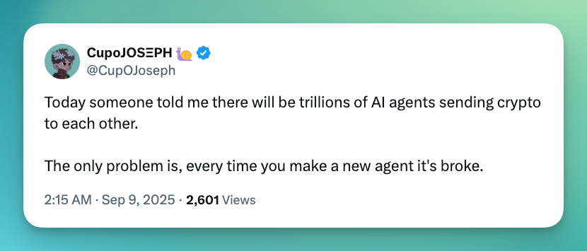 Takeaway: Before everyone gets too excited about the dawn of autonomous agents that'll all make money, let's not forget, every agent created needs money from someone.