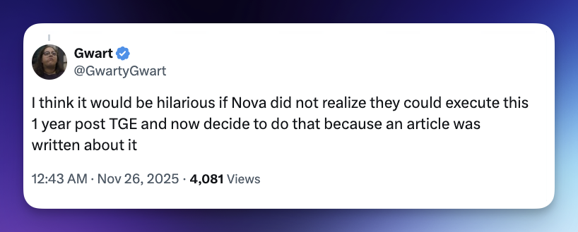 Takeaway: Bera’s streak of getting questionable PR continues. Personally, I’d like to encourage crypto projects to democratize such refund options. Nova Digital can afford this loss, but I might not.