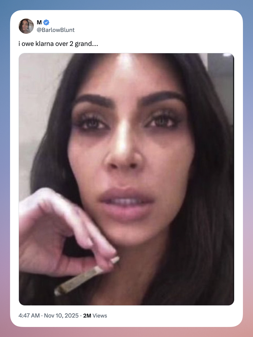 If you’re entering the holiday season a little broke and still want to buy Christmas gifts, then the Buy Now Pay Later industry will quickly creep up on you. Chief among them is the Swedish Fintech company: Klarna. They’ve kicked off a questionable trend on TikTok with young people bragging in the feed about the Klarna debt they’re incapable of paying back. This then gave rise to the idea that Klarna might go bust if more people choose to pay never.