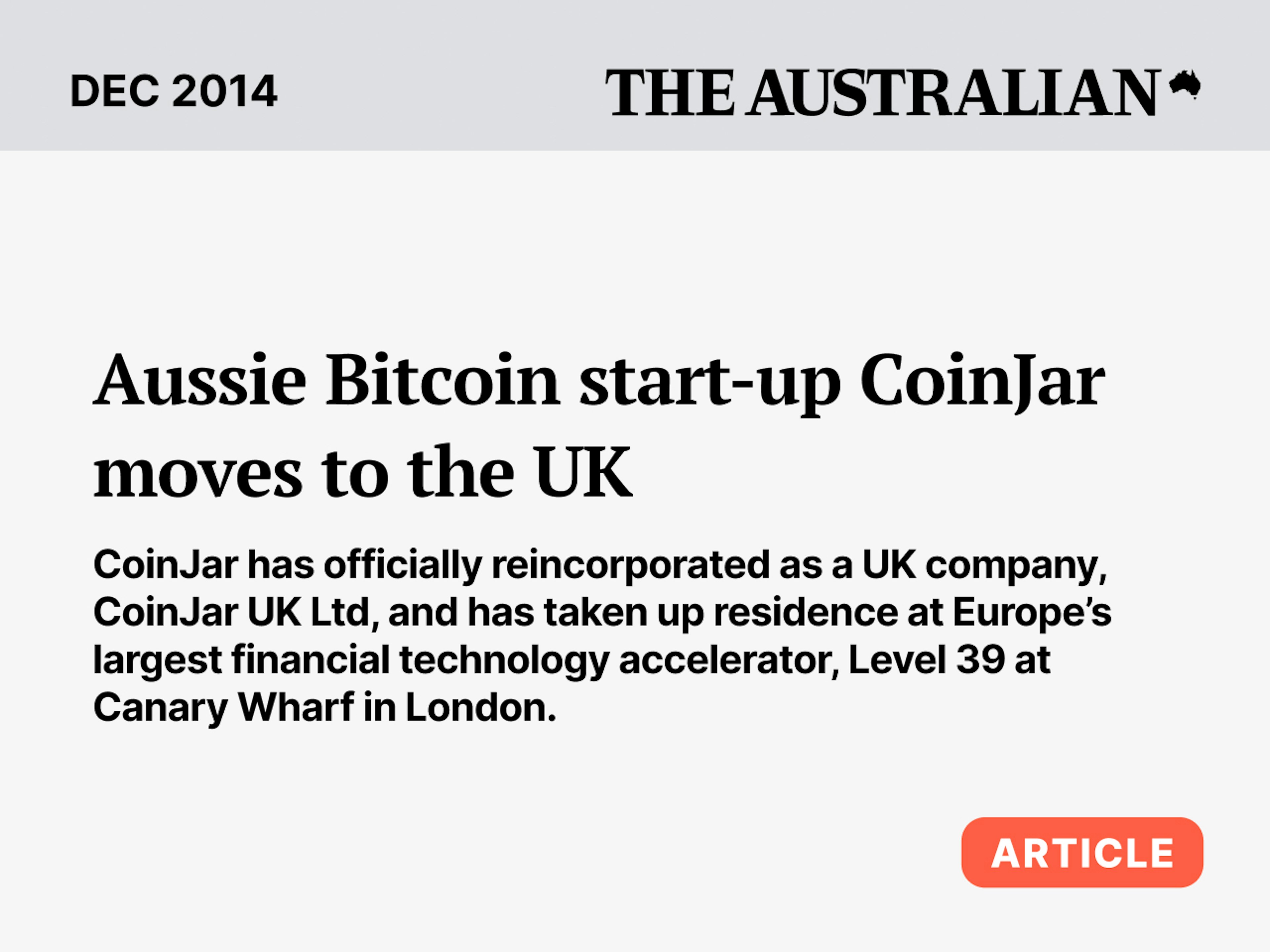 CoinJar Europe Limited (CRO 720832) is registered and supervised by the Central Bank of Ireland (Registration number C496731) for Anti-Money Laundering and Countering the Financing of Terrorism purposes only.